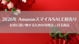 初売りでお得に買い物するコツは下記の記事「【2026年】AmazonスマイルSALE初売りはいつ?攻略法・目玉商品も紹介」を参考にしてください。